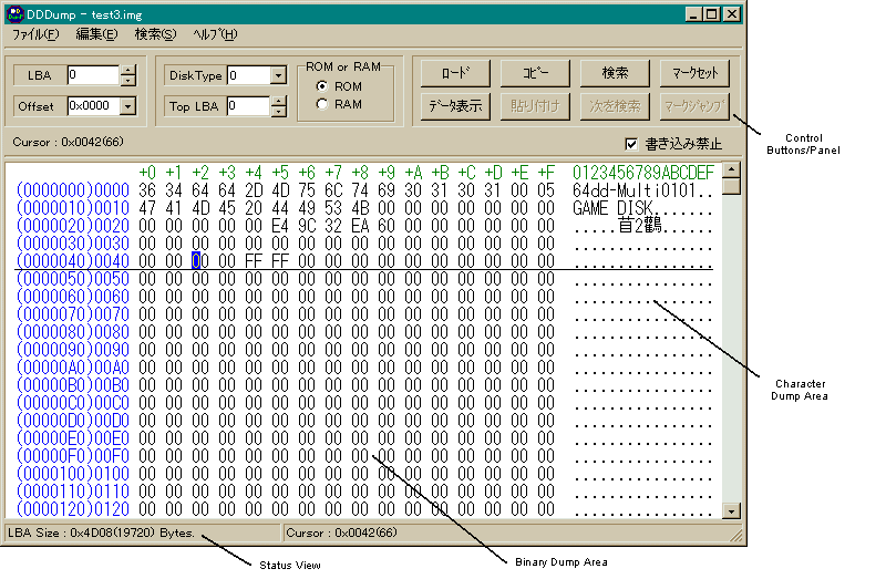 DDDump is a tool that provides an easy way to dump N64 Disk Drive disk image files onto Windows95. With DDDump you can specify the disk type, specify which LBA to start the file from, and edit.