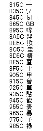 When using strings containing the following 2-byte Shift-JIS codes with a MIPS compiler, a '\' (backslash) character should be placed immediately after that character.