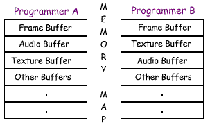 The main memory (RDRAM) can be used by the entire system. Programmers are free to divide up the main memory into buffers (frame buffer, audio buffer, Z-buffer, heap, texture buffer, and so on) as appropriate for each game program. It is a unified memory system.