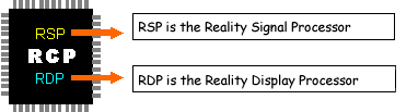 The RCP consists of two internal processors the RSP (Reality Signal Processor) and the RDP (Reality Display Processor), I/O Interface, and control logic.
