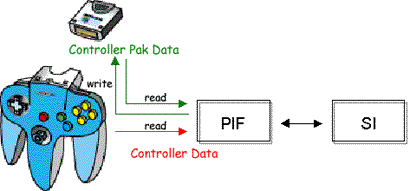 Similarly, data in the Controller Pak is also read and written by way of the PIF chip through the Controller as serial data.