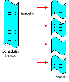 A high-priority thread called the Scheduler manages all the other threads. The Scheduler thread manages messages for the threads by using tasks or the VI retrace (the vertical synchronizing interrupt).