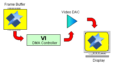 The VI process sends the data currently residing in the frame buffer to the video DAC.