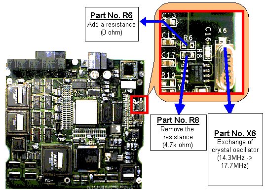 Figure 5-3-4 Alteration of the N64 Emulator Board required for use with PAL