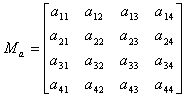 You will usually use 4 x 4 matrices in 3D graphics and 3 x 3 matrices in 2D graphics. These matrices are specified like this: