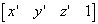 (equation 3: conversion equation from coordinate system 3 to coordinate system 4)