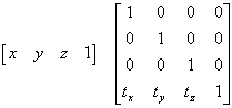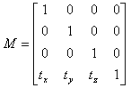 The translation matrix is used to translate; it translates the coordinates of an object to move it to a new location. When you multiply this matrix by a vector and expand it, you get the following result: