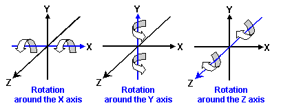 Note that the 3D modelers sold by various third-party companies are not standardized in terms of the directions of axes, directions, names of axes, rotational orders, or rotational directions that are used. Therefore, with the rotation of a polygon model, you need to verify the rotational procedures used by modelers before utilizing their output data.