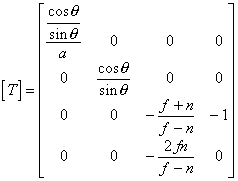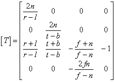 In this matrix the ratio of length to width is 1:1, sometimes making it a little hard to use for actual display on a screen. Therefore, you may need to add a different length to width ratio when preparing your projection matrix as shown here: