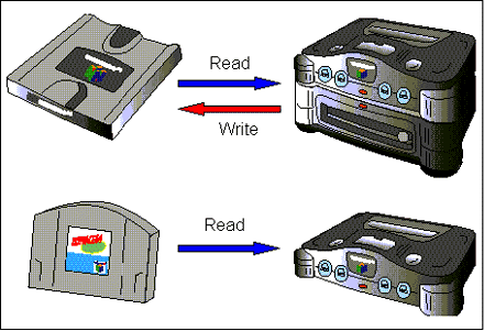 The disk is not simply a medium for storing game programs, although it can be used in that way as a read-only medium. It is also possible to designate separate read-only (ROM) and writable (RAM) areas on the same disk. Up to 38.44 MBytes can be designated as RAM on each disk, and this writable area can be used to store vast amounts of user data.