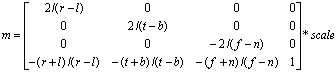 Returns an orthogonal projection matrix to the structure specified by m for a parallel view of the orthogonal projection. When this function is called, the result is the creation of the following kind of projection matrix: