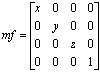 Returns to mf a modeling matrix scaled with (x, y, z). When this function is called, the result is the creation of the following kind of modeling matrix: