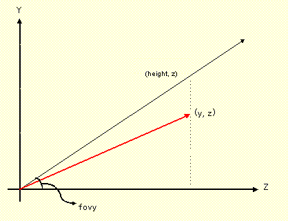 height = len*sin(fovy/2) = t*sin(fovy/2) / cos(fovy/2)