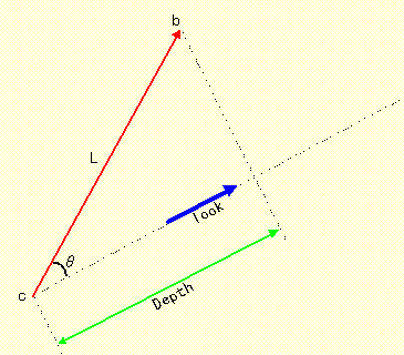 Depth = L*cos= |b |c|*((b |c)&geometry.htm#183;look)/(|b |c|*|look|) = (b |c)&geometry.htm#183;look = (bx |cx)*Lookx + (by |cy)*Looky + (bz |cz)*Lookz