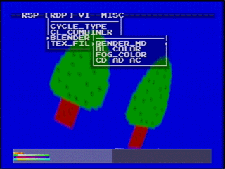 The fields in the bottom two lines of the Configuration menu enable quick selection of the same settings as those of the Render mode macros defined in gbi.h.