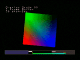 This directory has a simple sample for explaining the performance of NuSYSTEM. Each time, 25 squares of the same shape are written and rotated. The screen displays how many frames can be processed in 1 second. The stage can be switched using the START button. In Stage 1, the graphics task is divided up and processed. Press the Z button to switch from double to triple frame buffer mode. |