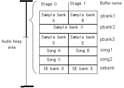 Figure 3-1 Memory map of audio heap used in the 64aud3 sample program