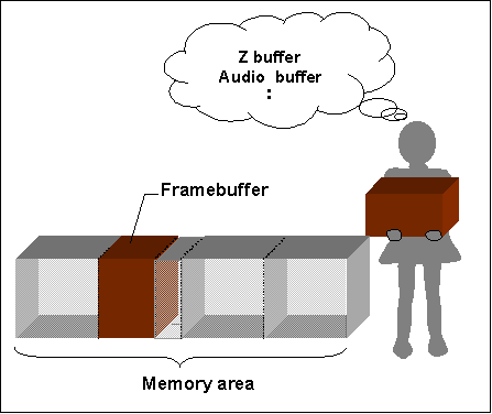 The programmer specifies how memory will be used in the N64 in this way. The framebuffer is the best example, but the audio buffer and the Z-buffer are also memory areas that are specified. Of course, if you use NuSystem, these different buffers are set aside automatically, but they can also be customized to meet the programmer's needs.