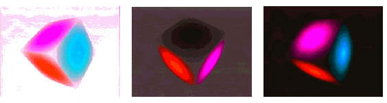 First compile and run gfx5.c without making any changes. The intensity texture "circle" was also used in gfx4.c. Here in gfx5.c, the intensity of this texture is used for the alpha value in order to display a semi-transparent cube.
